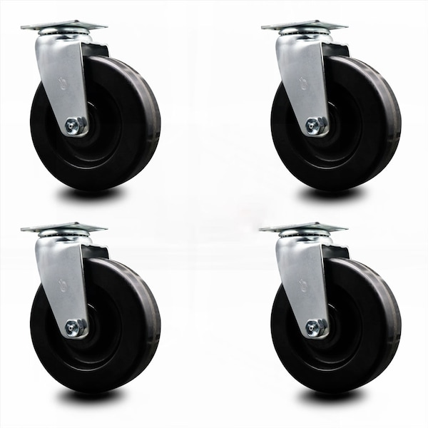 Listing is for a set of four (4) Service Caster Series #20 swivel casters, four (4) swivel casters with 6” diameter by 2" wide phenolic wheel and roller bearings. Supports a total weight of 1,800lbs (450lbs/per caster). When searching for a reliable and durable solution to your caster needs, rely on Service Caster Series 20 top plate phenolic wheel casters. The Service Caster Series #20 is ideal for light and medium duty material handling, carts, equipment, and shop projects. The zinc plated finish provides durability under any condition, and the phenolic resin wheels are highly resistant to impact damage, providing protection for floors in commercial and industrial settings. Not only are they resistant to water, oil, and grease, but because they are non-metallic, these wheels are spark proof, keeping you safely moving forward. Service Caster is unsurpassed in quality, reliability, and excellent customer service. Count on us to move you forward.