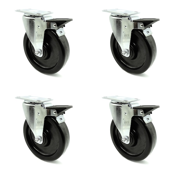 6 Inch Phenolic Wheel Swivel Top Plate Caster Set with Brake