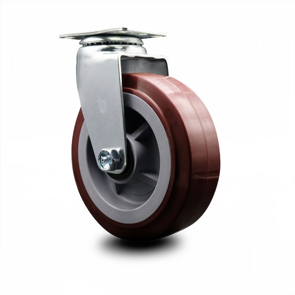 Listing is for one (1) Service Caster Series #20 swivel caster with a 6" diameter by 2" wide polyurethane on polyolefin wheel and roller bearing capable of supporting 450lbs./caster. When searching for a reliable and durable solution to your caster needs, consider Service Caster Series 20 polyurethane wheel casters. The Service Caster Series #20 features heavy duty non-marking polyurethane tread on a polyolefin core wheel, providing a smooth roll over uneven surfaces without marking or marring floors. These versatile casters are ideal for a wide range of applications, such as dollies, platform trucks, warehouse carts and freight terminals. Or ensure a smooth and secure ride for food service carts, hotel housekeeping carts, and industrial and commercial equipment. Even drywall carts, welding carts, and wall panel carts will be ready to roll on the Series 20, keeping you moving forward. Service Caster is unsurpassed in quality, reliability, and excellent customer service. Count on us to move you forward.