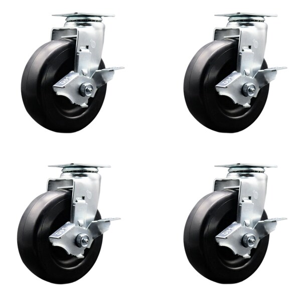 6 Inch Polyolefin Swivel Caster Set with Ball Bearings and Brakes SCC