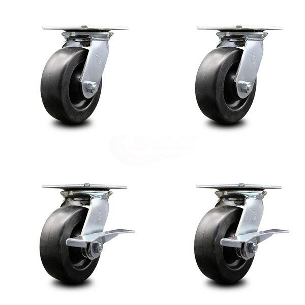 Listing is for a set of four (4) Service Caster Series #35 swivel casters, two (2) with side locking brakes, with 6" diameter by 2" wide polyolefin wheels capable of supporting a total weight of 2,800 lbs. (700 lbs./caster). When searching for a reliable and durable solution to your caster needs, consider Service Caster Series 35 polyolefin wheel casters. The Service Caster Series #35 features light weight polyolefin wheels that are resistant to shock, chemicals and abrasion, and finely crafted with a bright zinc plated finish and heat-treated ball bearing raceway. These versatile casters are ideal for a wide range of applications, such as dollies, platform trucks, warehouse carts and freight terminals. Or ensure a smooth and secure ride for food service carts, hotel housekeeping carts, and industrial and commercial equipment. Even drywall carts, welding carts, and wall panel carts will be ready to roll on the Series 35, keeping you moving forward.