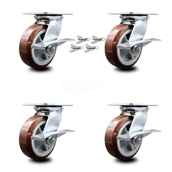 6 Inch Polyurethane Caster Set with Roller Bearing and Brakes/Swivel Locks SCC