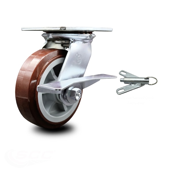 6 Inch Polyurethane Caster with Roller Bearing and Brake/Swivel Lock SCC