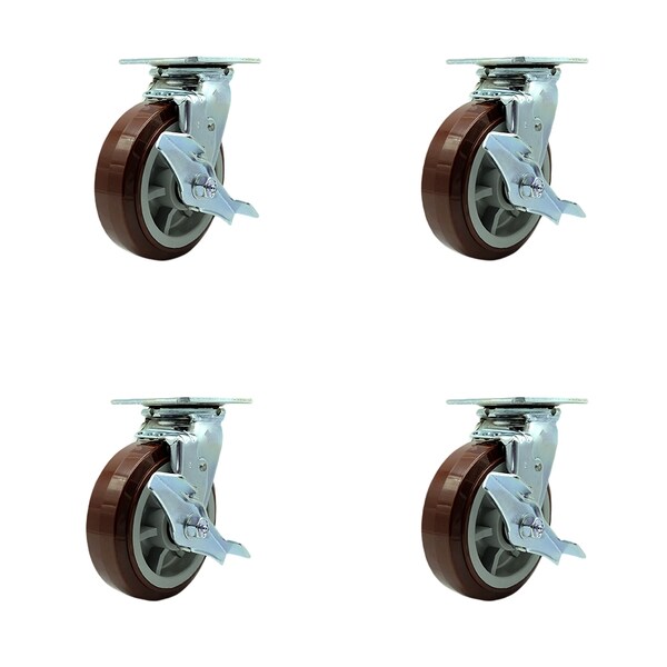 6 Inch Polyurethane Swivel Caster Set with Roller Bearing and Brake SCC
