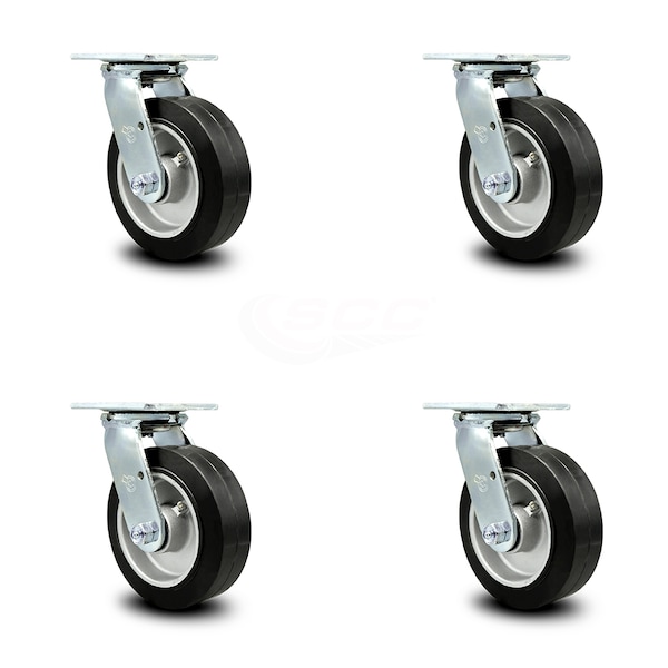 6 Inch Rubber on Aluminum Wheel Swivel Caster Set with Ball Bearings SCC