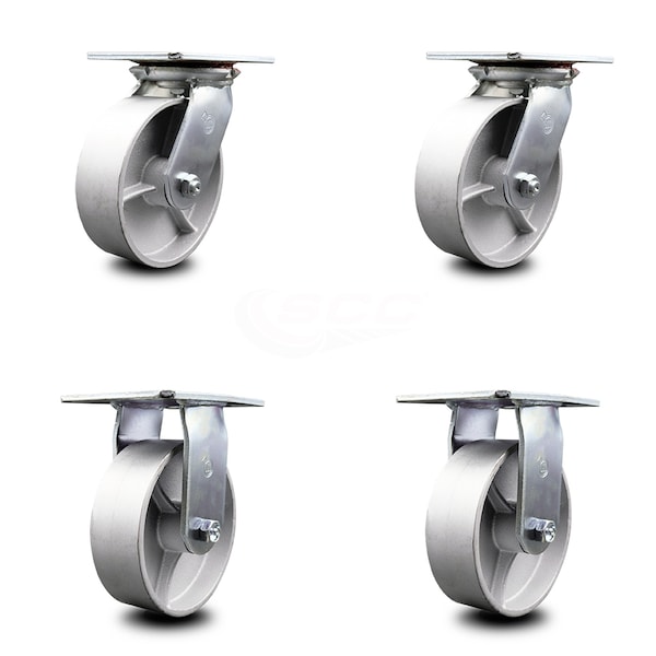 Listing is for a set of four (4) Service Caster Series #35 casters, two (2) swivel and two (2) rigid casters, with 6" diameter by 2" wide semi steel cast iron wheels capable of supporting a total weight of 4,800 lbs. (1,200 lbs./caster). When searching for a reliable and durable solution for heavy duty projects, consider Service Caster’s Series 35 semi steel cast iron wheel casters. The Service Caster Series #35 is ideal for material handling, carts, equipment, and shop projects. The semi-steel cast iron wheel is built to withstand high capacity, heavy loads up to 1250 lbs and in temperatures up to 600°F. An economic choice over steel, semi-steel wheels are abrasion resistant and rugged. Finely crafted with a machined hub, wheel face and double ball bearing heat treated raceways, these versatile casters are ideal for a wide range of applications, such as dollies, platform trucks, warehouse carts and freight terminals. Or ensure a smooth and secure ride for industrial and commercial equipment. Even drywall carts, welding carts, and wall panel carts will be ready to roll on the Series 35, keeping you moving forward.