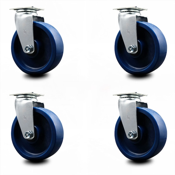 Listing is for a set of four (4) Service Caster Series #20 swivel casters, four (4) swivel casters with 6” diameter by 2" wide solid polyurethane wheel and roller bearings. Supports a total weight of 1,800lbs (450lbs/per caster). When searching for a reliable and durable solution to your caster needs, consider Service Caster's Series 20 top plate solid polyurethane wheel casters. The Service Caster Series #20 features a non-marking, non-marring polyurethane wheel. Molded as one solid piece, this wheel is free from debonding, and will not flat spot, as can occur with comparable polyurethane wheels, ensuring a smooth and solid roll over long periods of time. These versatile casters are ideal for a wide range of applications, such as dollies, platform trucks, warehouse carts and freight terminals. Or ensure a secure ride for food service carts, hotel housekeeping carts, and industrial and commercial equipment. Even drywall carts, welding carts, and wall panel carts will be ready to roll on the Series 20, keeping you moving forward. Service Caster is unsurpassed in quality, reliability, and excellent customer service. Count on us to move you forward.