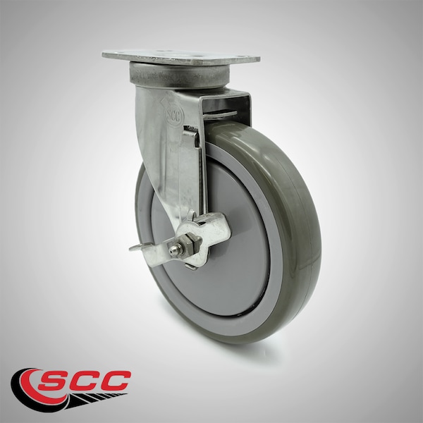 6 Inch SS Gray Polyurethane Swivel Top Plate Caster with Brake