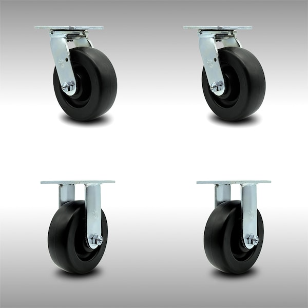 6 Inch SS Polyolefin Caster Set with Ball Bearings 2 Swivel 2 Rigid SCC