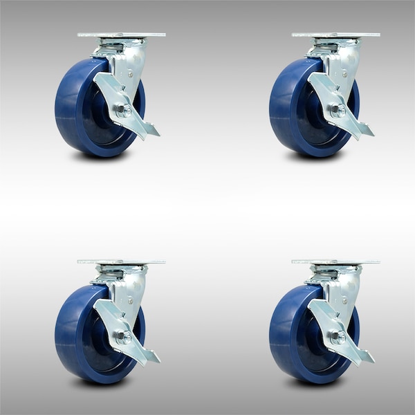 6 Inch SS Solid Poly Swivel Caster Set with Roller Bearings and Brakes SCC