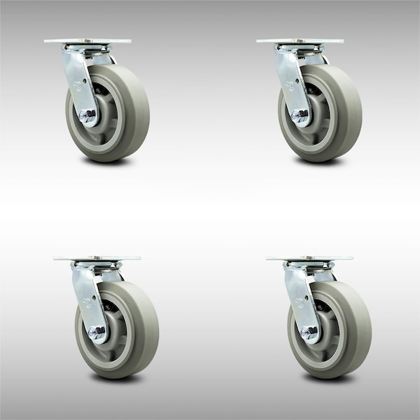 6 Inch SS Thermoplastic Rubber Caster Set with Roller Bearing and Swivel Lock