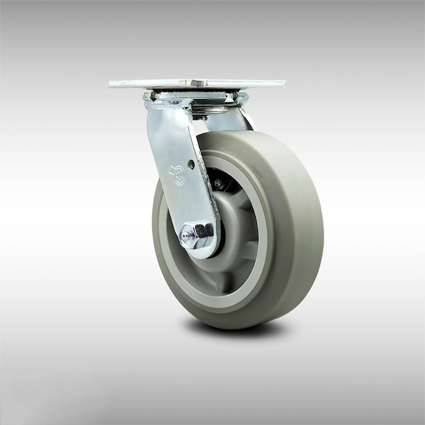 Listing is for one (1) Service Caster Series #30 stainless steel swivel caster with a 6" diameter by 2" wide thermoplastic rubber flat tread on polyolefin core wheel capable of supporting 500 lbs./caster.When searching for a reliable and durable solution for medium and heavy duty projects, consider Service Caster’s Series 30 stainless steel thermoplastic rubber flat tread on polyolefin core casters. The soft flat tread is made of thermoplastic rubber that is non-marking and non-marring, and on the polyolefin core provides a long lasting, high capacity wheel that is capable of easy rolling under heavy loads. Finely crafted with double ball bearing heat treated raceways, these versatile casters are ideal for a wide range of applications, such as dollies, platform trucks, warehouse carts and freight terminals. Or ensure a smooth and secure ride for food service carts, hotel housekeeping carts, and industrial and commercial equipment. Even drywall carts, welding carts, and wall panel carts will be ready to roll on the Series 30, keeping you moving forward. In contrast to the zinc plated caster, the luxuriously polished stainless steel finish resists rust and corrosion in indoor or outdoor applications where moisture is a factor. Service Caster is unsurpassed in quality, reliability, and excellent customer service. Count on us to move you forward.
