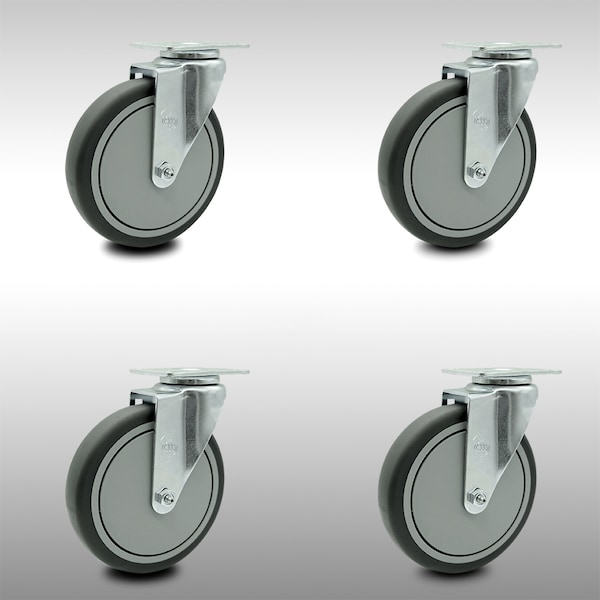 6 Inch SS Thermoplastic Rubber Wheel Swivel Top Plate Caster Set