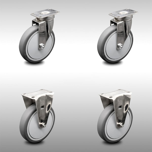 6 Inch SS Thermoplastic Rubber Wheel Swivel Top Plate Caster Set with 2 Rigid