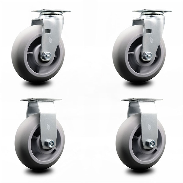 6 Inch Thermoplastic Rubber Caster Set with Ball Bearings 2 Swivel 2 Rigid