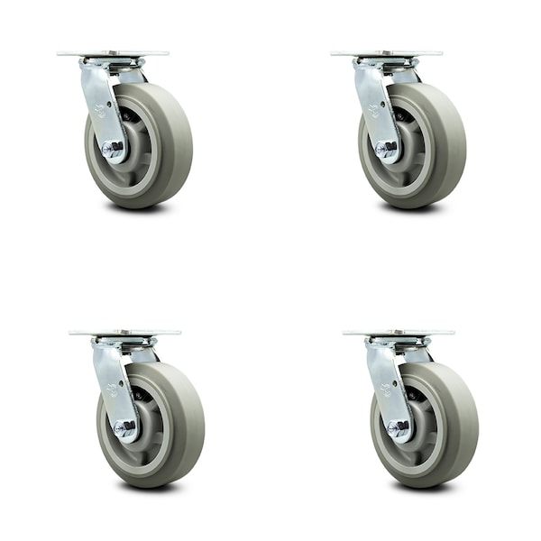 6 Inch Thermoplastic Rubber Caster Set with Roller Bearing and Swivel Lock SCC