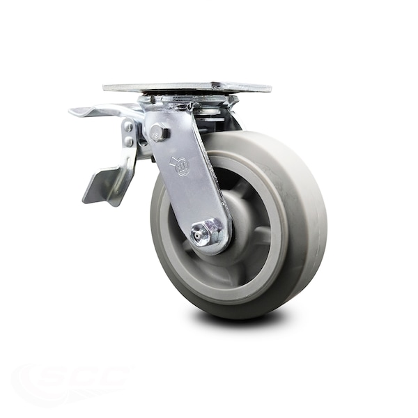 6 Inch Thermoplastic Rubber Caster with Roller Bearing and Total Lock Brake SCC