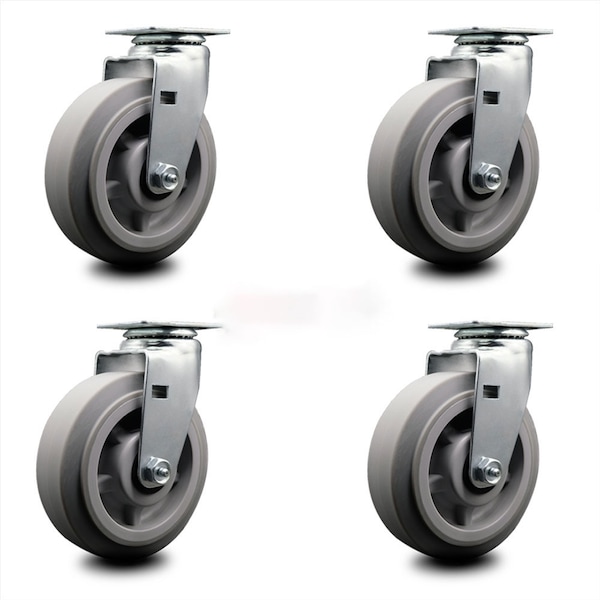 6 Inch Thermoplastic Rubber Wheel Swivel Caster Set with Roller Bearings SCC