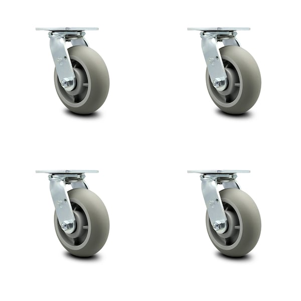 6 Inch Thermoplastic Rubber Wheel Swivel Caster Set with Roller Bearings SCC