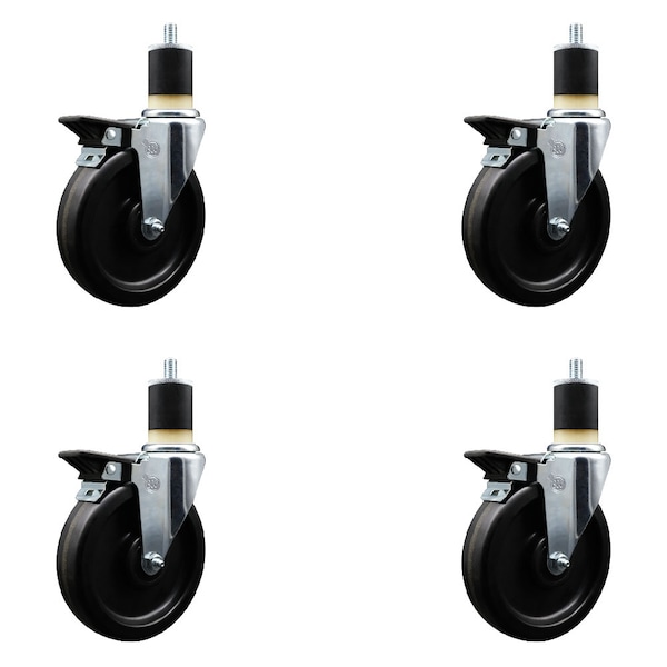 6'' Phenolic Swivel 1-7/8'' Expanding Stem Caster Set with Brake, 4PK