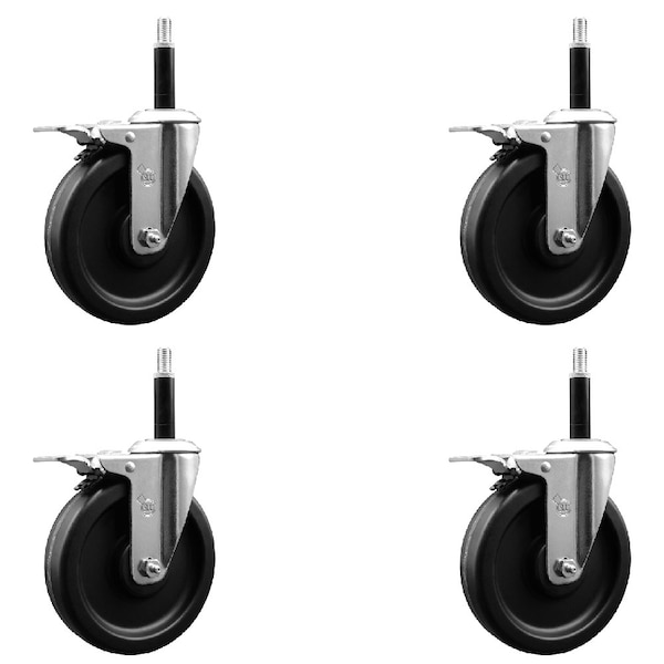 6'' Phenolic Swivel 3/4'' Expanding Stem Caster Set Total Lock Brake, 4PK