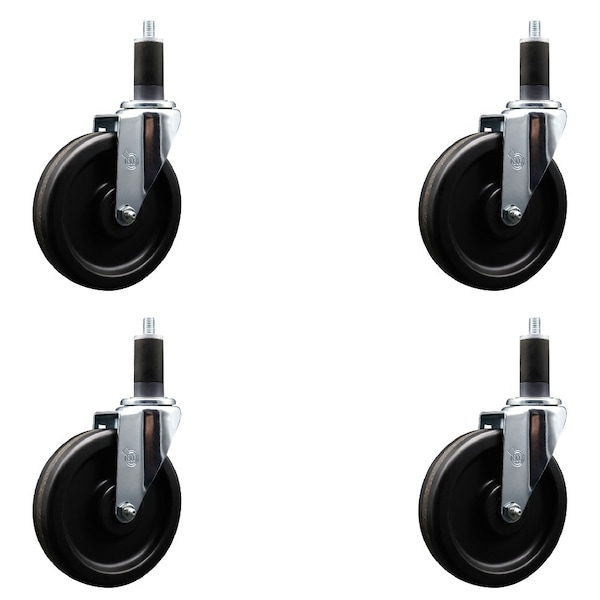 6'' Phenolic Wheel Swivel 1-1/4'' Expanding Stem Caster Set, 4PK