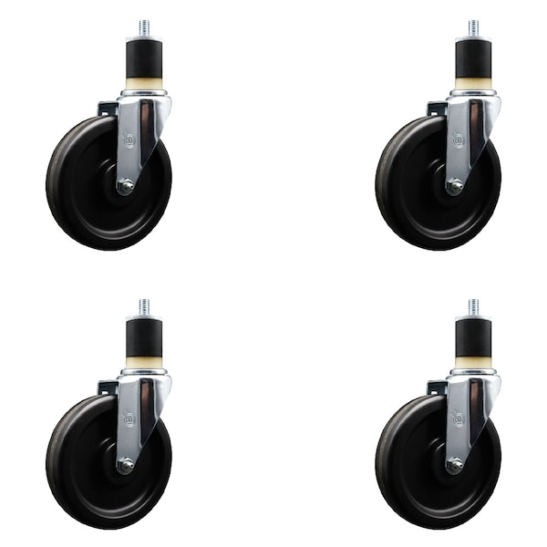 6'' Phenolic Wheel Swivel 1-7/8'' Expanding Stem Caster Set, 4PK