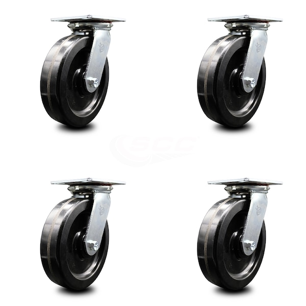 8 Inch Heavy Duty Phenolic Caster Set with Roller Bearings SCC, 4PK