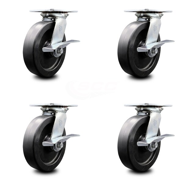 8 Inch Heavy Duty Polyolefin Caster Set with Ball Bearings and Brakes SCC