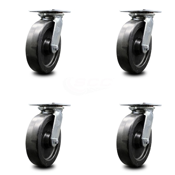 8 Inch Heavy Duty Polyolefin Caster Set with Roller Bearings SCC, 4PK