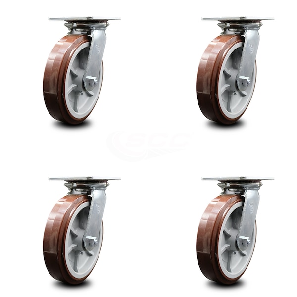 8 Inch Heavy Duty Polyurethane Caster Set with Roller Bearings SCC, 4PK