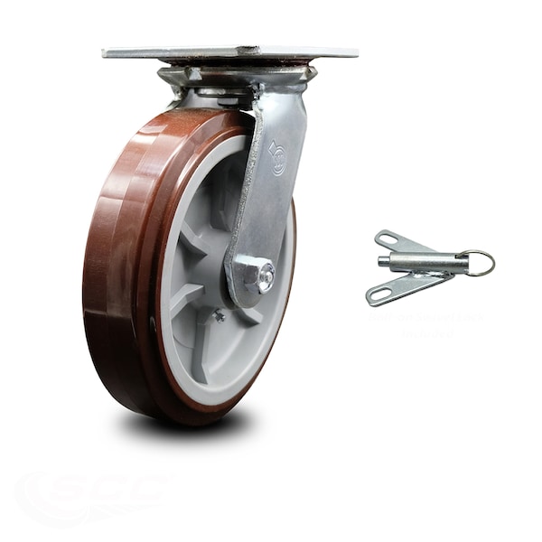8 Inch Heavy Duty Polyurethane Caster with Roller Bearing and Swivel Lock SCC