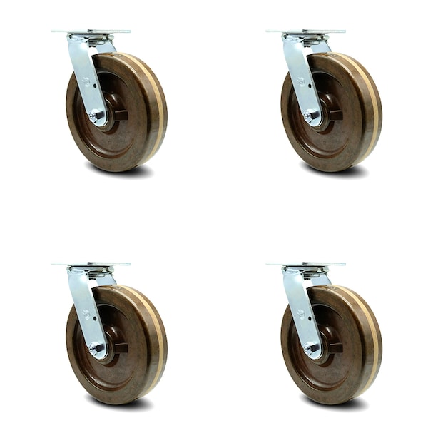 8 Inch High Temp Phenolic Wheel Swivel Caster Set with Roller Bearings SCC