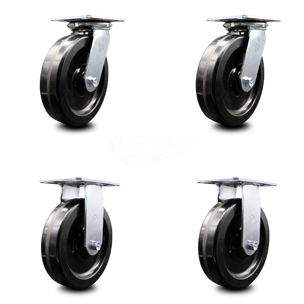 8 Inch Phenolic Caster Set with Ball Bearings 2 Swivel 2 Rigid