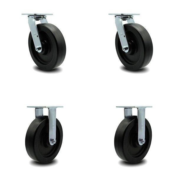8 Inch Polyolefin Caster Set with Ball Bearings 2 Swivel 2 Rigid