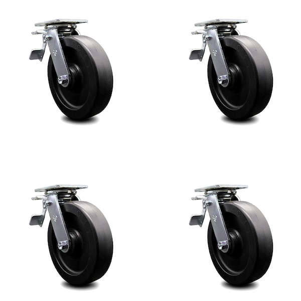 8 Inch Polyolefin Caster Set with Ball Bearings and Total Lock Brakes SCC