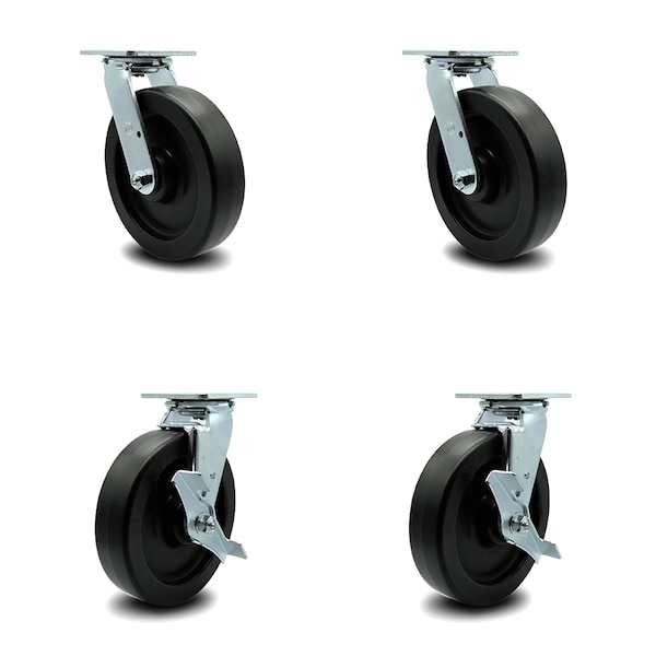 8 Inch Polyolefin Swivel Caster Set with Ball Bearings 2 Brakes