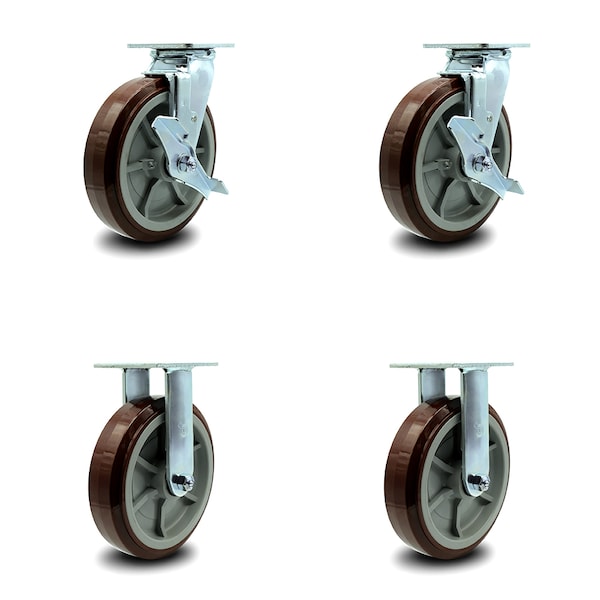8 Inch Polyurethane Caster Set with Ball Bearings 2 Brake 2 Rigid
