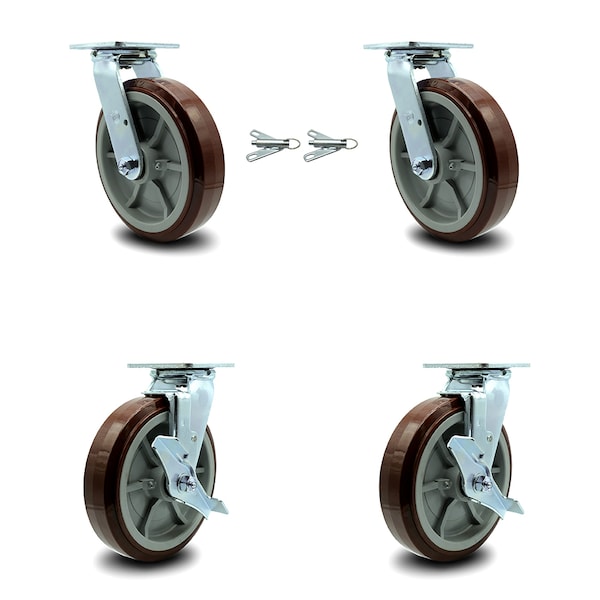 8 Inch Polyurethane Caster Set with Roller Bearings 2 Swivel Lock 2 Brake SCC
