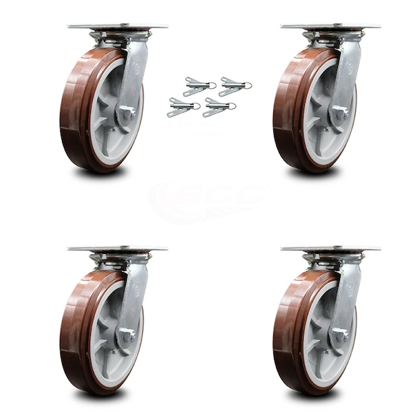 8 Inch Polyurethane Caster Set with Roller Bearings and Swivel Locks SCC