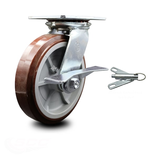 8 Inch Polyurethane Caster with Roller Bearing and Brake/Swivel Lock SCC