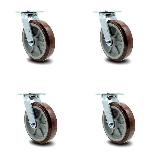 8 Inch Polyurethane Swivel Caster Set with Roller Bearing and Swivel Lock SCC