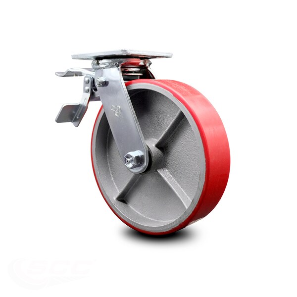 Listing is for one (1) Service Caster Series #30 swivel caster with a 8" diameter by 2" wide red polyurethane on cast iron wheel and a total capable of supporting 1,250 lbs./caster.When searching for a reliable and durable solution for medium and heavy duty projects, consider Service Caster’s Series 30 polyurethane on metal wheel casters. The Service Caster Series #30 is ideal for material handling, carts, equipment, and shop projects. The non-marking, non-marring polyurethane tread performs especially well on hard surfaces such as concrete, tile, and wood, while the metal core wheel stands up to heavier loads with a stable and secure roll. Finely crafted with double ball bearing heat treated raceways, these versatile casters are ideal for a wide range of applications, such as dollies, platform trucks, warehouse carts and freight terminals. Or ensure a smooth and secure ride for food service carts, hotel housekeeping carts and industrial and commercial equipment. Even drywall carts, welding carts, and wall panel carts will be ready to roll on the Series 30, keeping you moving forward. Service Caster is unsurpassed in quality, reliability, and excellent customer service. Count on us to move you forward.