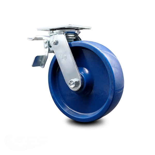 8 Inch Solid Polyurethane Caster with Ball Bearing and Total Lock Brake SCC