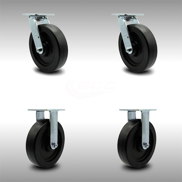 8 Inch SS Polyolefin Caster Set with Ball Bearings 2 Swivel 2 Rigid SCC