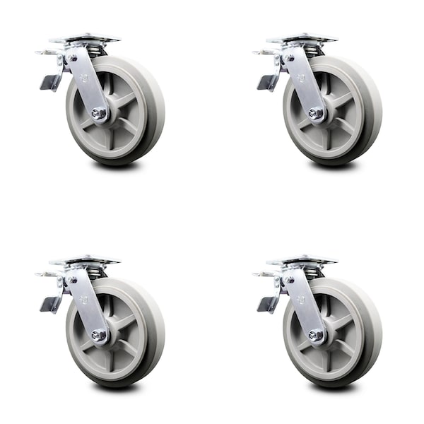 8 Inch Thermoplastic Rubber Caster Set with Roller Bearings and Total Lock Brake