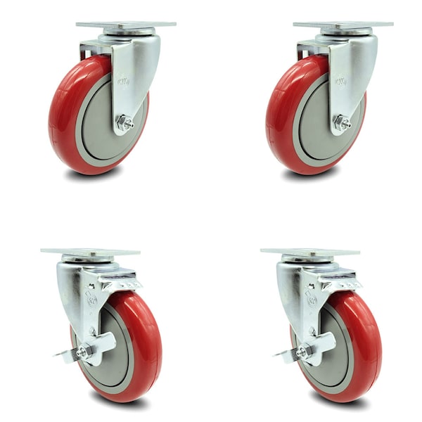 High quality casters for select Avantco, Regency, and Winholt equipment. Listing is for a set of four (4) Service Caster Series #20 swivel casters with 5 inch diameter by 1-1/4 inch wide red polyurethane tread on red polyolefin core wheels. Set includes two (2) swivel casters and two (2) swivel casters with brakes. These Avantco replacement casters can replace damaged casters on select Avantco, Regency, and Winholt equipment. Supports 1,200 total pounds (lbs.) at 300 pounds (lbs.) per caster. When searching for a reliable and durable solution to your Avantco, Regency, and Winholt equipment replacement caster needs, consider Service Caster Series 20 top plate polyurethane tread on polyolefin core wheel casters. The Service Caster Series #20 features polyurethane tread on polyolefin core wheels that offer a softer tread for smoother travel while also resisting damage from debris. Finely crafted with a bright zinc plated finish and heat-treated ball bearing raceway, these Service Caster high performance Avantco, Regency, and Winholt equipment replacement casters balance high pay loads with smooth and quiet operation. These versatile casters are ideal for a wide range of applications, but are commonly used on Avantco, Regency, and Winholt equipment. Service Caster is unsurpassed in quality, reliability, and excellent customer service. Count on us to move you forward.