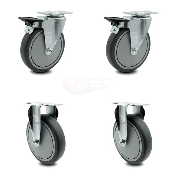 High quality replacement casters for Cambro Beverage Service Cart, Camkiosk, and Cambar. Listing is for a set of four (4) Service Caster Series #20 casters, two (2) rigid and two (2) swivel casters with posi locking brakes, with 6" diameter by 1-1/4" wide thermoplastic rubber wheels capable of supporting a total weight of 1,200 lbs. (300 lbs./caster). When searching for a reliable and durable solution to your Cambro equipment replacement caster needs, consider Service Caster Series 20 top plate thermoplastic rubber tread on polyolefin core wheel casters. The Service Caster Series #20 features thermoplastic rubber tread on polyolefin core wheels that offer a softer tread for smoother travel while also resisting damage from debris. Finely crafted with a bright zinc plated finish and heat-treated ball bearing raceway, these Service Caster high performance Cambro equipment replacement casters balance high pay loads with smooth and quiet operation. These versatile casters are ideal for a wide range of applications, but are commonly used on Cambro equipment. Service Caster is unsurpassed in quality, reliability, and excellent customer service. Count on us to move you forward.