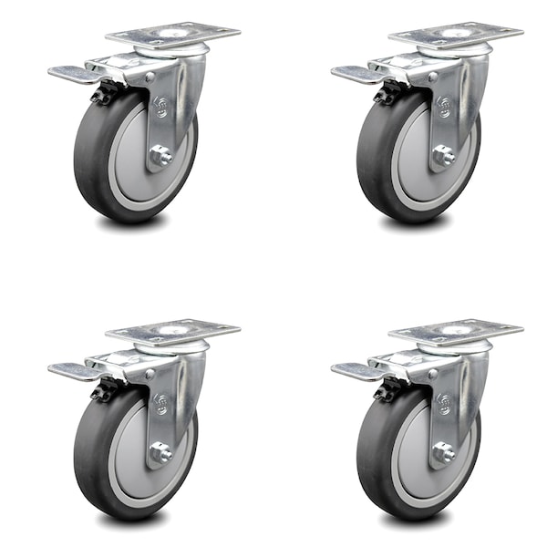 High quality replacement swivel casters with total lock brakes for Cambro Dish Caddies. Listing is for a set of four (4) Service Caster Series #20 swivel casters, four (4) swivel casters with total lock brakes, 5” diameter by 1-1/4” wide thermoplastic rubber wheels. Supports a total weight of 1,200lbs (300lbs/per caster). When searching for a reliable and durable solution to your Cambro equipment replacement caster needs, consider Service Caster Series 20 top plate thermoplastic rubber tread on polyolefin core wheel casters. The Service Caster Series #20 features thermoplastic rubber tread on polyolefin core wheels that offer a softer tread for smoother travel while also resisting damage from debris. Finely crafted with a bright zinc plated finish and heat-treated ball bearing raceway, these Service Caster high performance Cambro equipment replacement casters balance high pay loads with smooth and quiet operation. These versatile casters are ideal for a wide range of applications, but are commonly used on Cambro equipment. Service Caster is unsurpassed in quality, reliability, and excellent customer service. Count on us to move you forward.