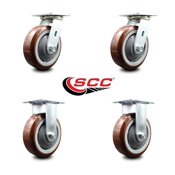High quality replacement swivel caster set for a Chemtainer CST60URR & CST60RBS. Listing is for four (4) Service Caster Series #30, two (2) swivel casters and two (2) rigid casters, with 6 inch diameter by 2 inch wide polyurethane on polyolefin wheels with plastic thread guards. Supports 900 pounds (lbs.) per caster. When searching for a reliable and durable solution to your caster needs, consider Service Caster Series 30 top plate polyolefin wheel casters. The Service Caster Series #30 features light weight polyolefin wheels that are resistant to shock, chemicals and abrasion, and finely crafted with a bright zinc plated finish and heat-treated ball bearing raceway. These versatile casters are ideal for a wide range of applications, such as dollies, platform trucks, warehouse carts and freight terminals. Or ensure a smooth and secure ride for food service carts, hotel housekeeping carts, and industrial and commercial equipment. Even drywall carts, welding carts, and wall panel carts will be ready to roll on the Series 30, keeping you moving forward. Service Caster is unsurpassed in quality, reliability, and excellent customer service. Count on us to move you forward.